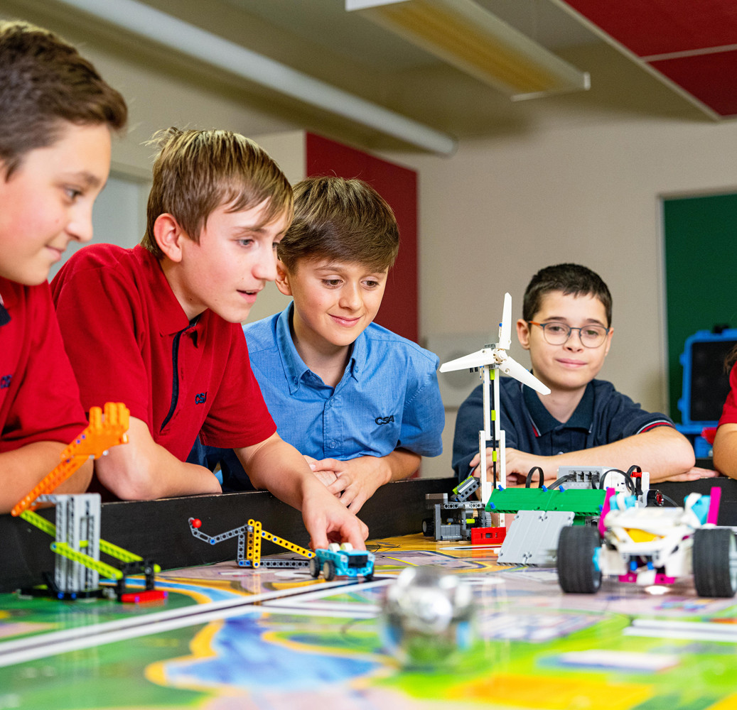 Cette concentration qui vise l’intégration technologique est basée sur la création, la réalisation et la programmation d’un robot. En équipe, les élèves apprennent une foule de notions qui leur permettent de concevoir, construire, programmer et manipuler un robot. Ils développent des compétences en résolution de problèmes et en informatique. Les élèves inscrits auront la chance de participer à des compétitions à l’échelle nationale et internationale comme le Défi FIRST LEGO League.