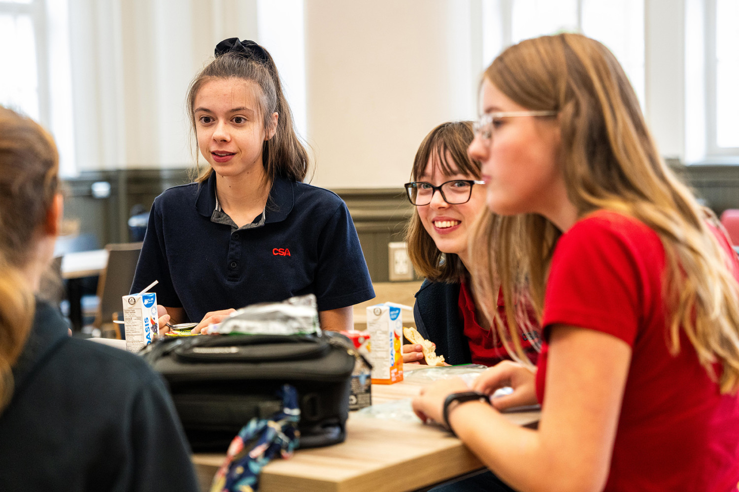 Notre institution a son propre personnel affecté aux services alimentaires composé de gens expérimentés et dévoués. Chaque midi, nous offrons des repas variés et équilibrés, répondant aux besoins nutritionnels de nos élèves. Des micro-ondes sont également disponibles pour ceux qui préfèrent apporter leur repas.
